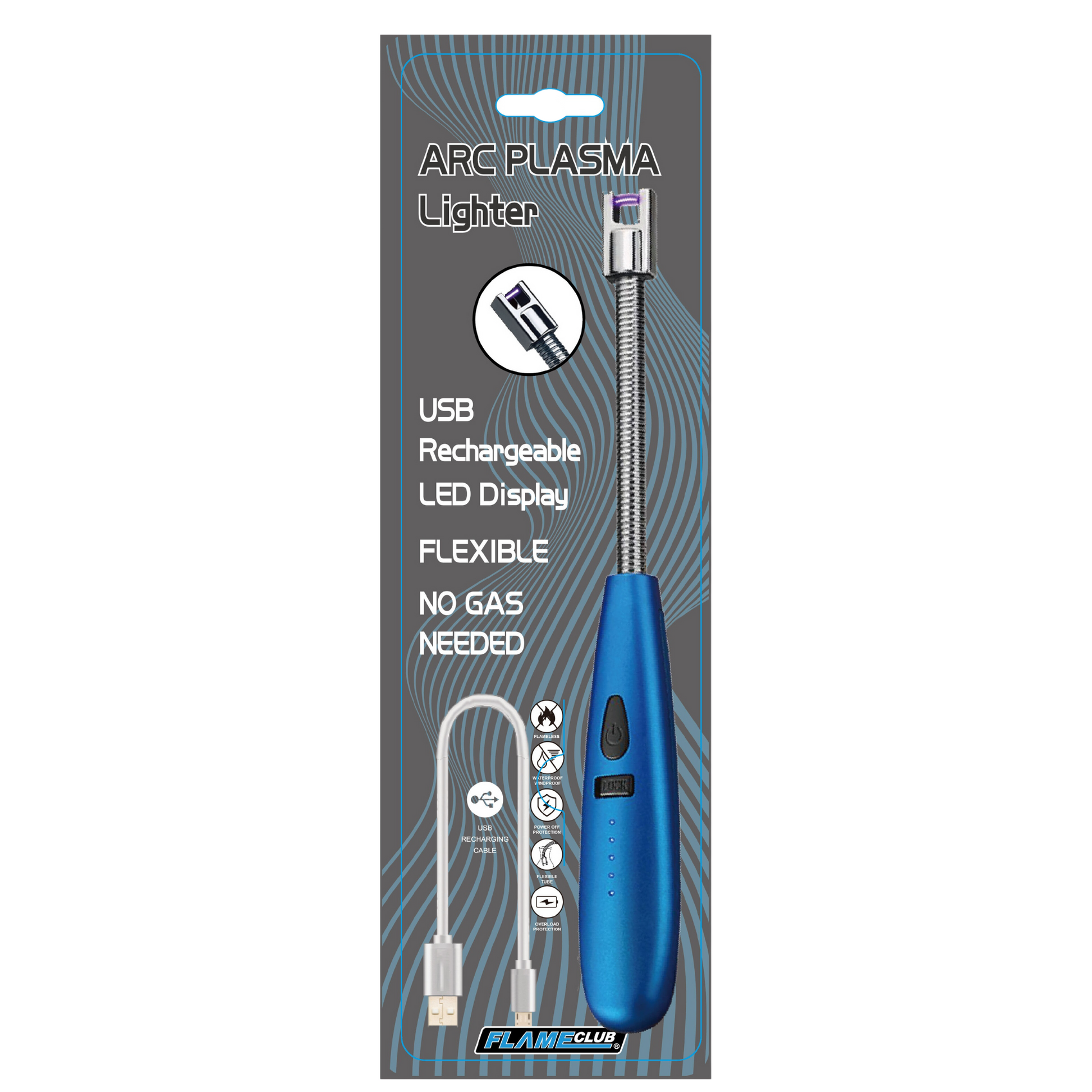 The Flexible Electric USB Windproof Lighter is an innovative device that uses electric plasma to ignite various items. It has a flexible neck that can bend and twist in any direction, allowing you to access hard-to-reach places. It is windproof and flameless, so you don't have to worry about burning your fingers or running out of fuel. It is also rechargeable via USB and has a power-saving feature that automatically shuts off the lighter after 10 seconds of inactivity. It has a child safety switch to prevent accidental use by children. It is compact and portable, ideal for traveling and outdoor activities. It can be used to light candles, incense, gas stoves, wood wool, fireworks, cigarettes and more. It comes with a USB cable and can produce up to 500 electric pulses per charge. The Flexible Electric USB Windproof Lighter is a convenient and eco-friendly alternative to traditional lighters.