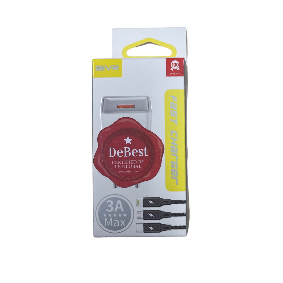 DeBest Wall Travel Charger + 3 in 1 Cable