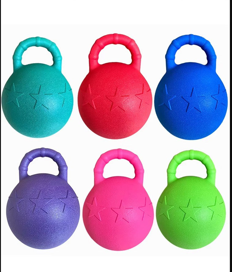 The built-in handle makes it easy for horses to pick up, toss, and carry around, providing hours of fun and reducing stable boredom.