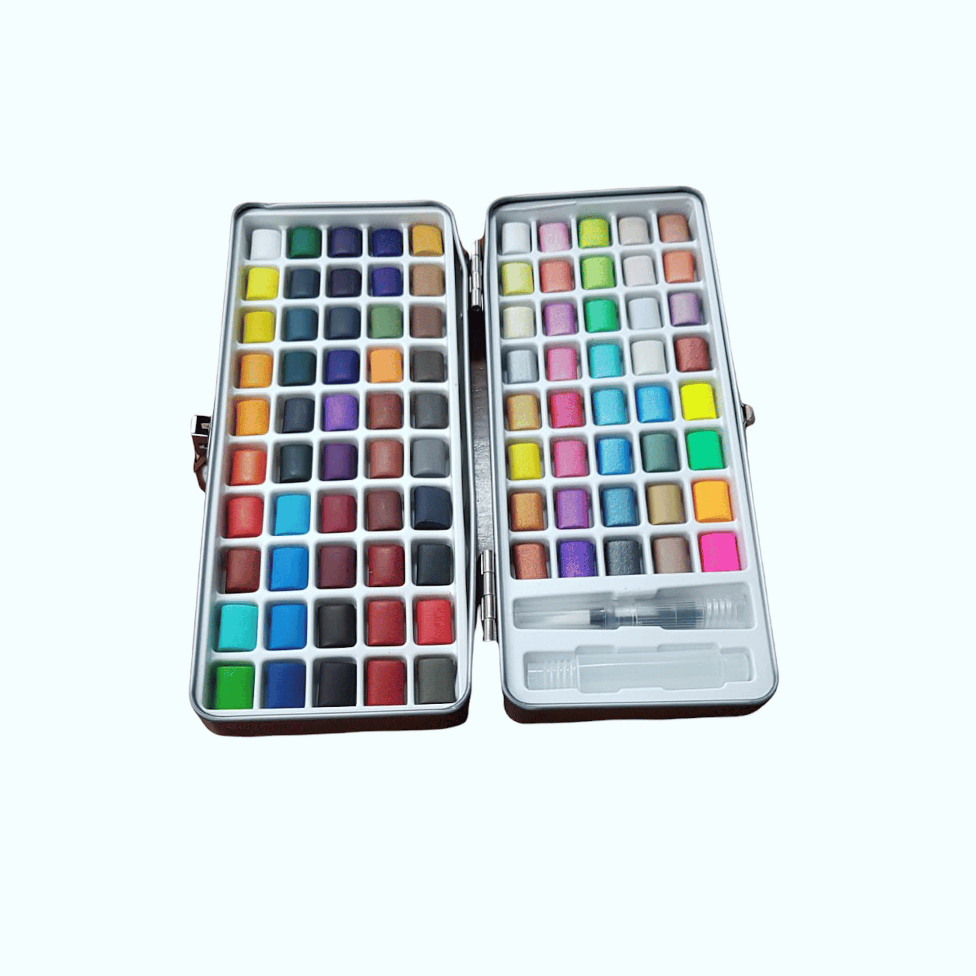 Top Quality Watercolour set - in tin box – 90 colours + Brush (Includes Metal Colours)