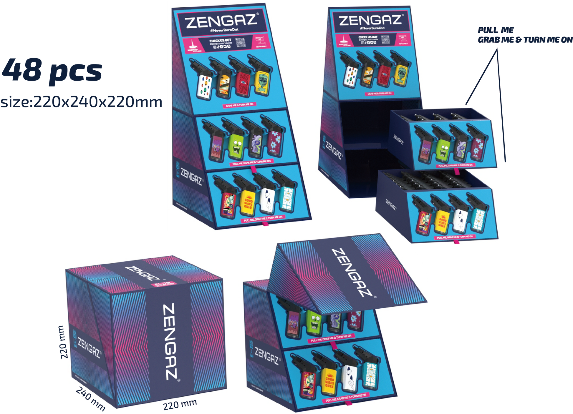 Zengaz Lighter Cube Display ZL 19 Mega Jet Flame - 48 pcs