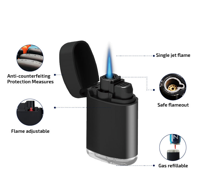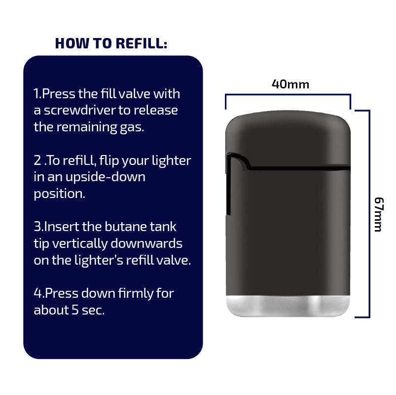 - Refill recommended with butane Africa Flame/Flame Club lighters gas