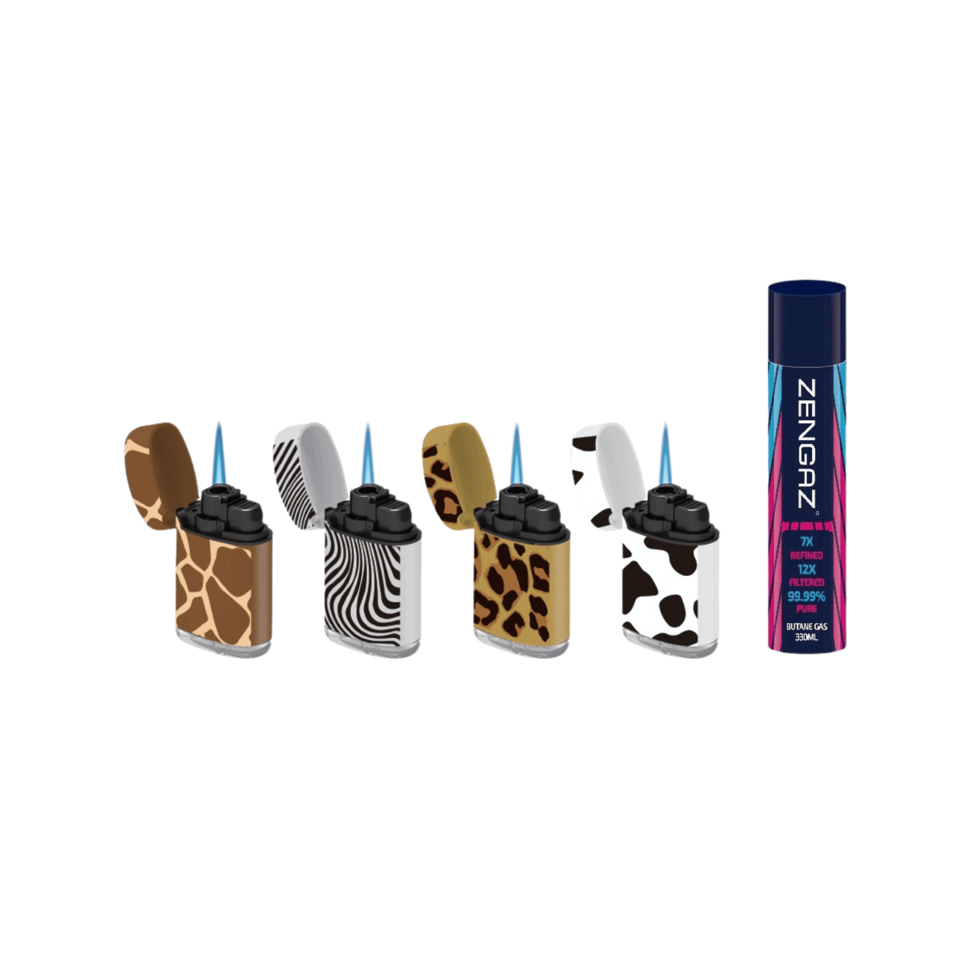 4 Zengaz ZL-3 Jet Flame Lighters & 330ml Pure Butane Zengaz Gas